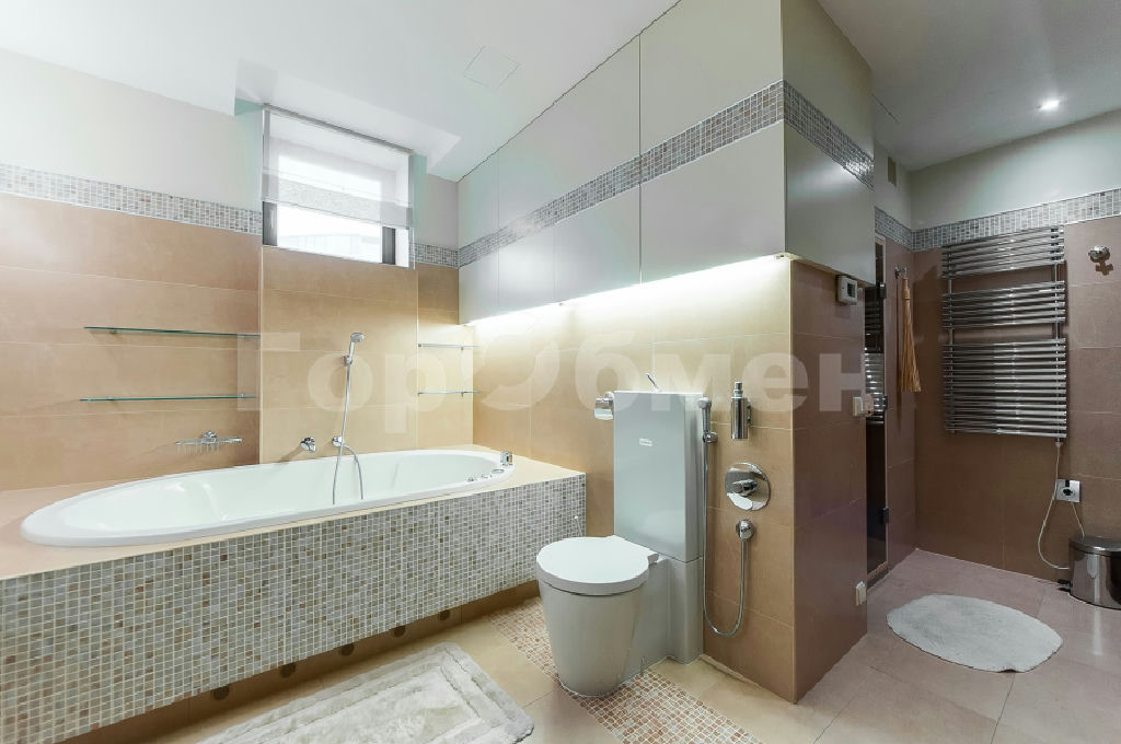 На 2-ом уровне находятся две спальни с гардеробной, кабинет (либо 3-я спальня), а также санузел: с джакузи, сауной и душевой кабиной.