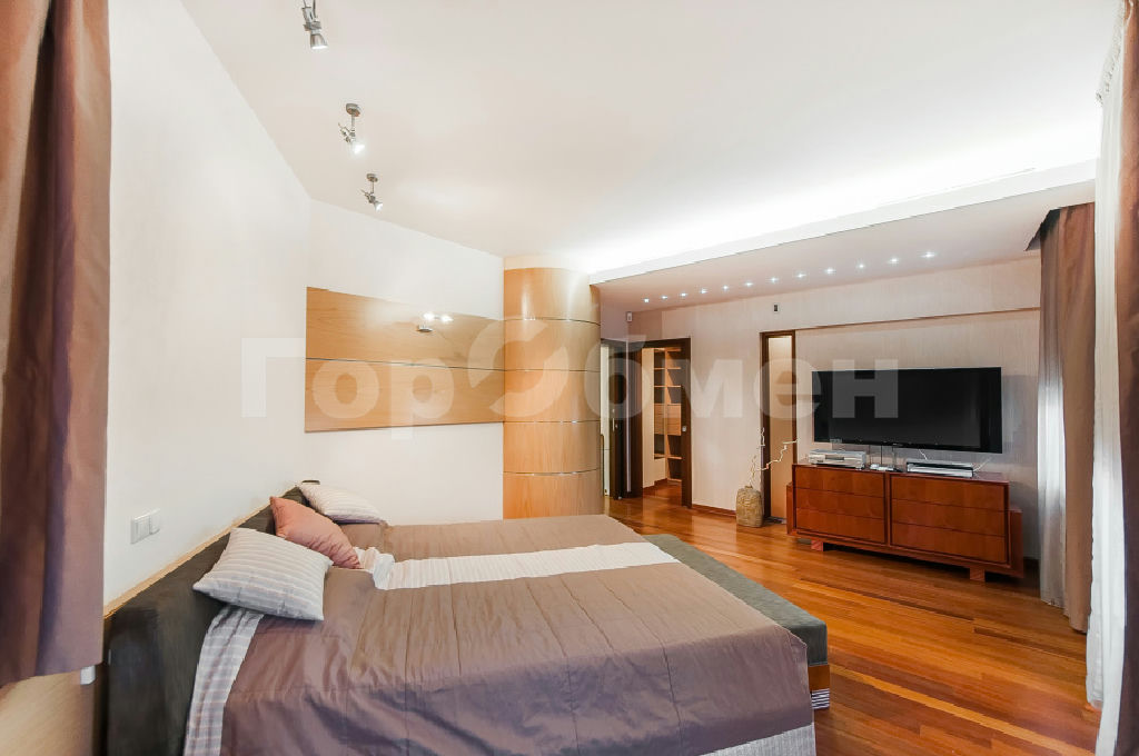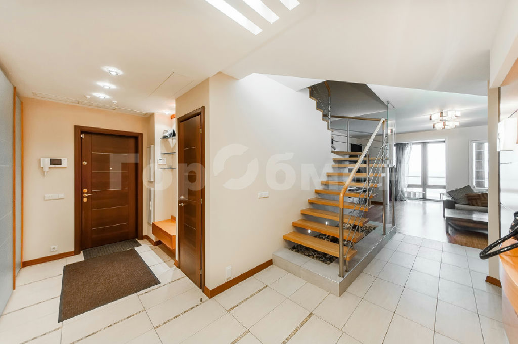 Планировка представляет собой два уровня общей площадью 224,4 кв.м с великолепными видами на город и дизайнерской отделкой.